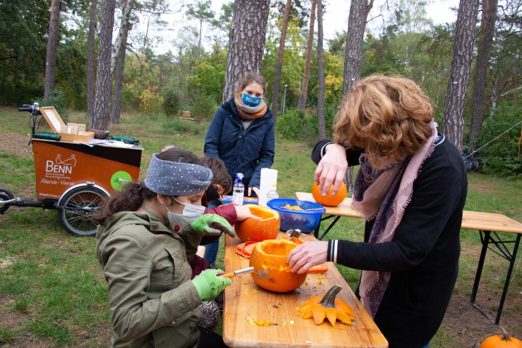 Am 16.10.20 lud das BENN-Team gemeinsam mit der Kinder- und Jugendeinrichtung Würfel, der Initiative Garten der Hoffnung, dem IB-Team Alfred-Randt-Straße und Ehrenamtlichen Nachbar*innen und Interessierte in den Garten der Hoffnung im IB-Übergangswohnheim ein, um gemeinsam zu buddeln, pflanzen und Hochbeete winterfest zu machen – alles an der frischen Luft! Eine Gruppe Kinder schnitzte für Halloween Kürbisse, die im Garten des Übergangwohnheims und im Würfel ausgestellt und schön beleuchtet wurden.