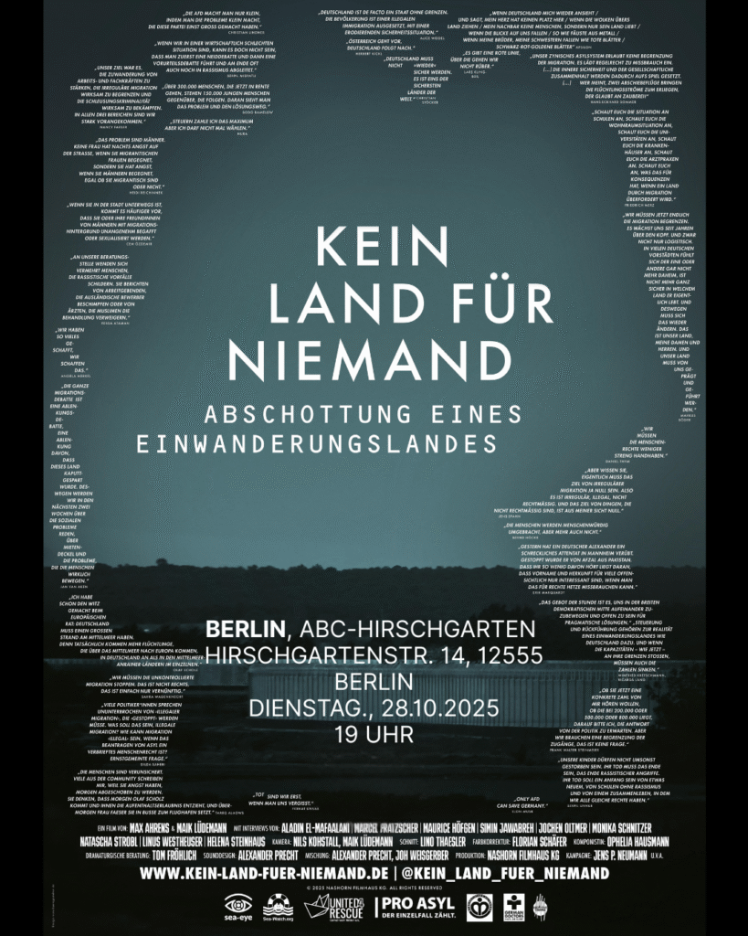 weiter lesenDas „Kollektiv Kulturkombüse“ zeigt die Dokumentation „Kein Land für Niemand“ Ab 19 Uhr Essen mit Einführungsvortrag zum Film Ab ca. 20 Uhr Filmvorführung Nach dem Film Diskussionsrunde zum Thema. Kein Land für Niemand – Abschottung eines Einwanderungslandes Dokumentarfilm von Maik Lüdemann, Max Ahrens Deutschland steht an einem historischen Wendepunkt: Erstmals seit 1945 wird im Jahr…